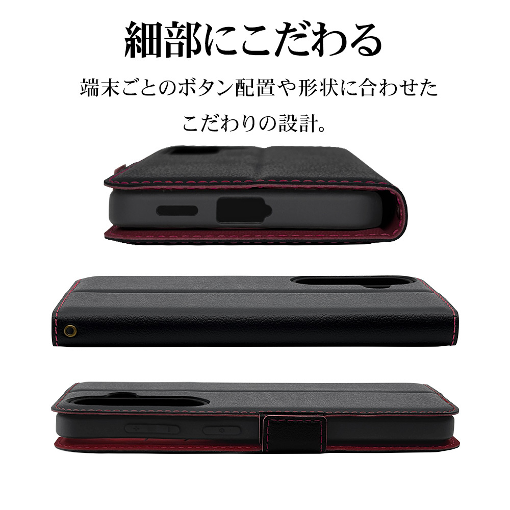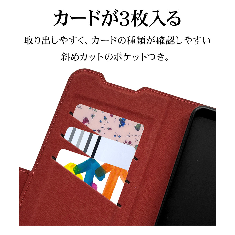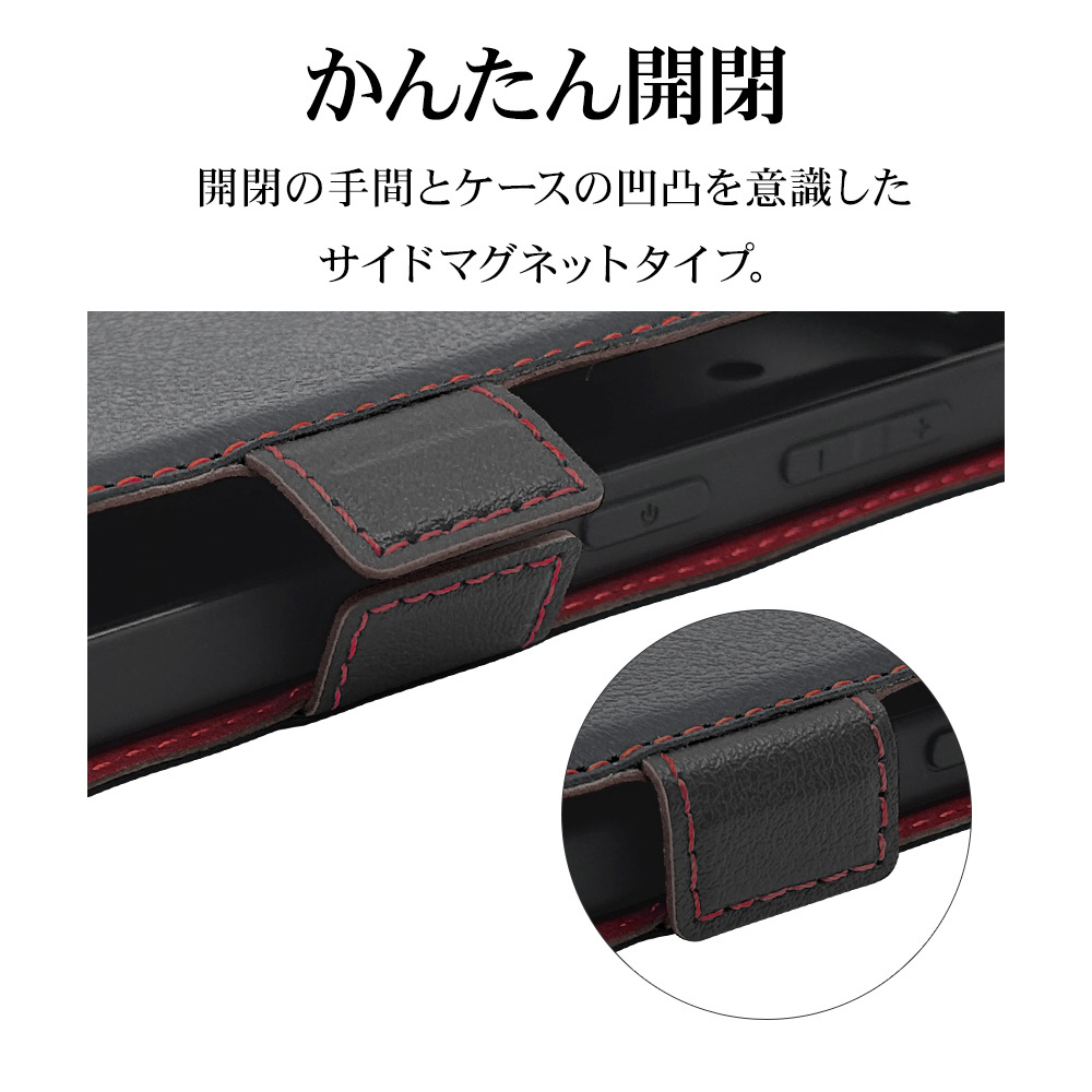 液晶画面側と背面側の両面を保護できる薄型で持ちやすい手帳型ケースです。