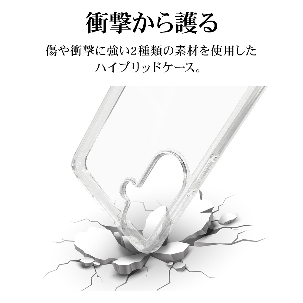 ●側面は弾力と柔軟性を兼ね備えたTPU素材で端末を衝撃から保護し、着脱も簡単です。※衝撃吸収については、一般的なポリカーボネート製ケースと比較した自社検証結果で、無破損、無故障を保証するものではありません。