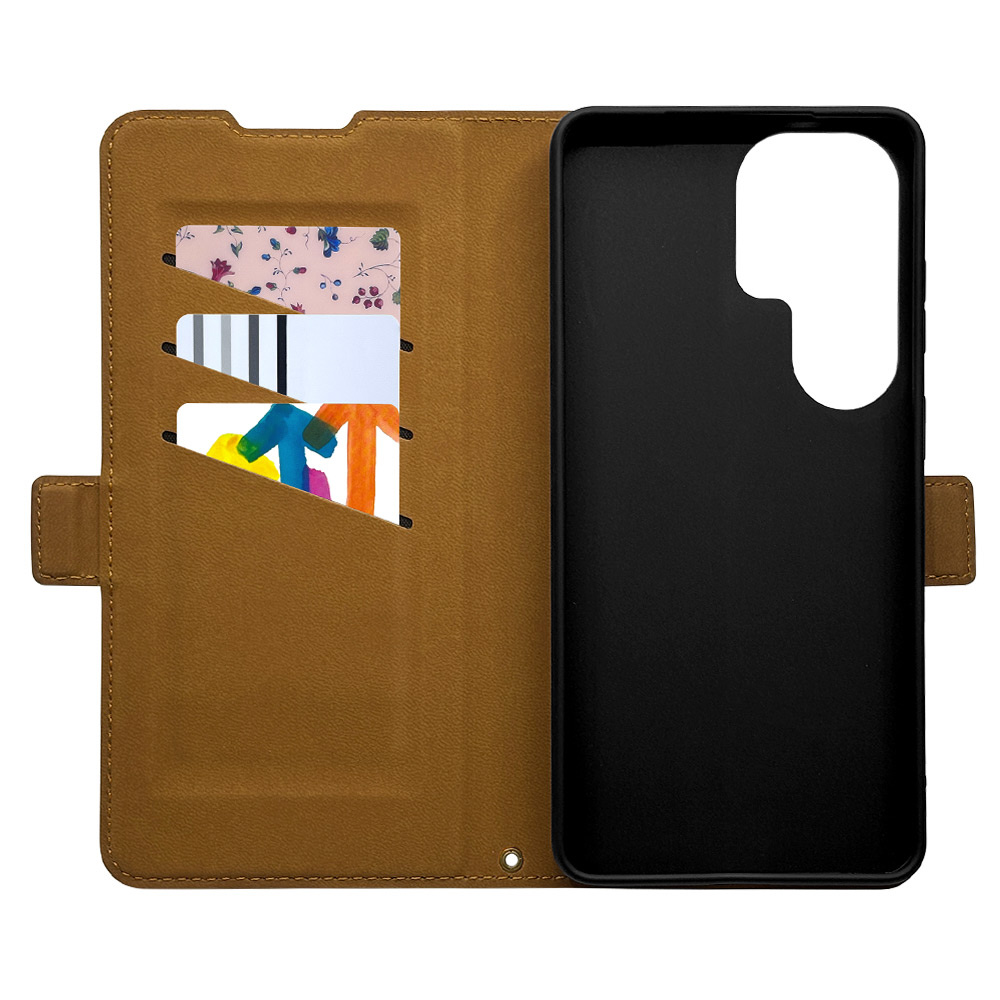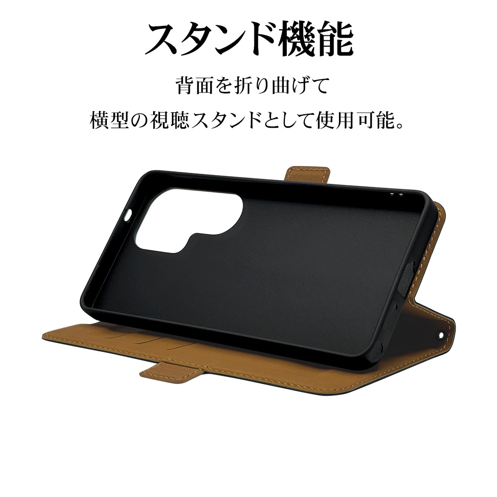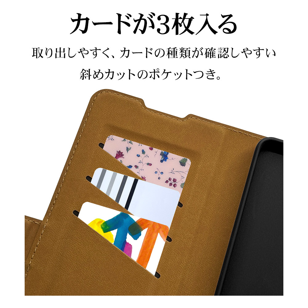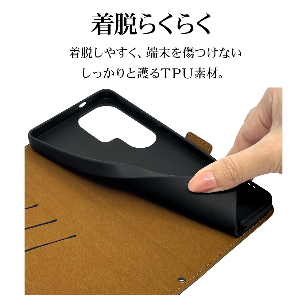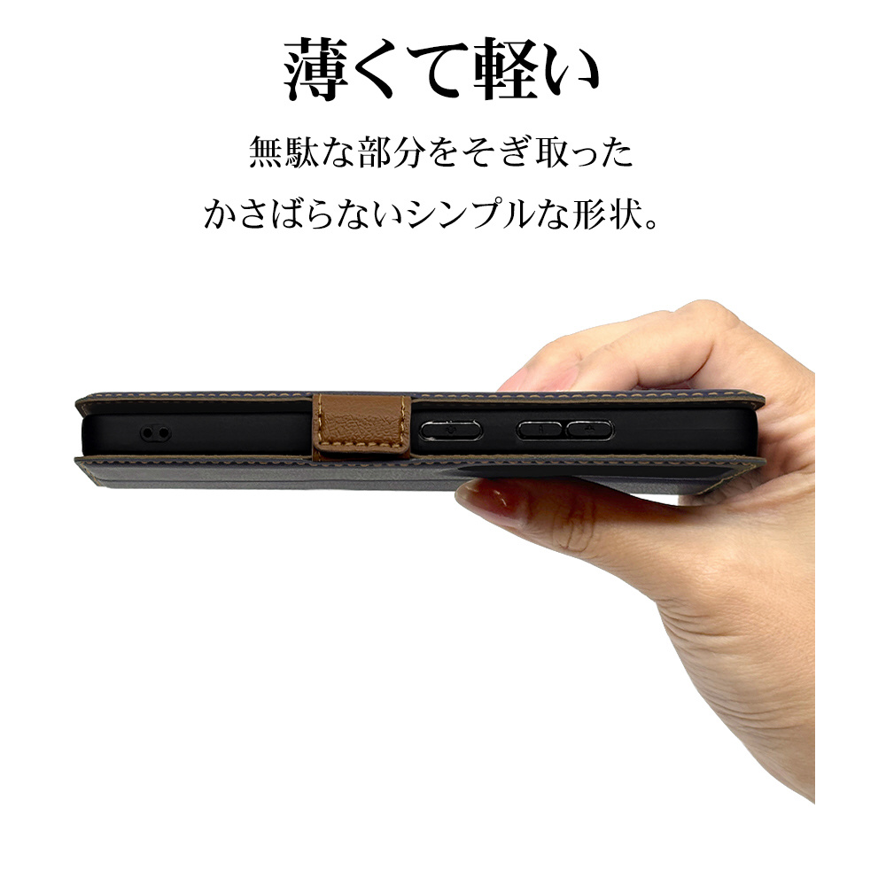 液晶画面側と背面側の両面を保護できる薄型で持ちやすい手帳型ケースです。