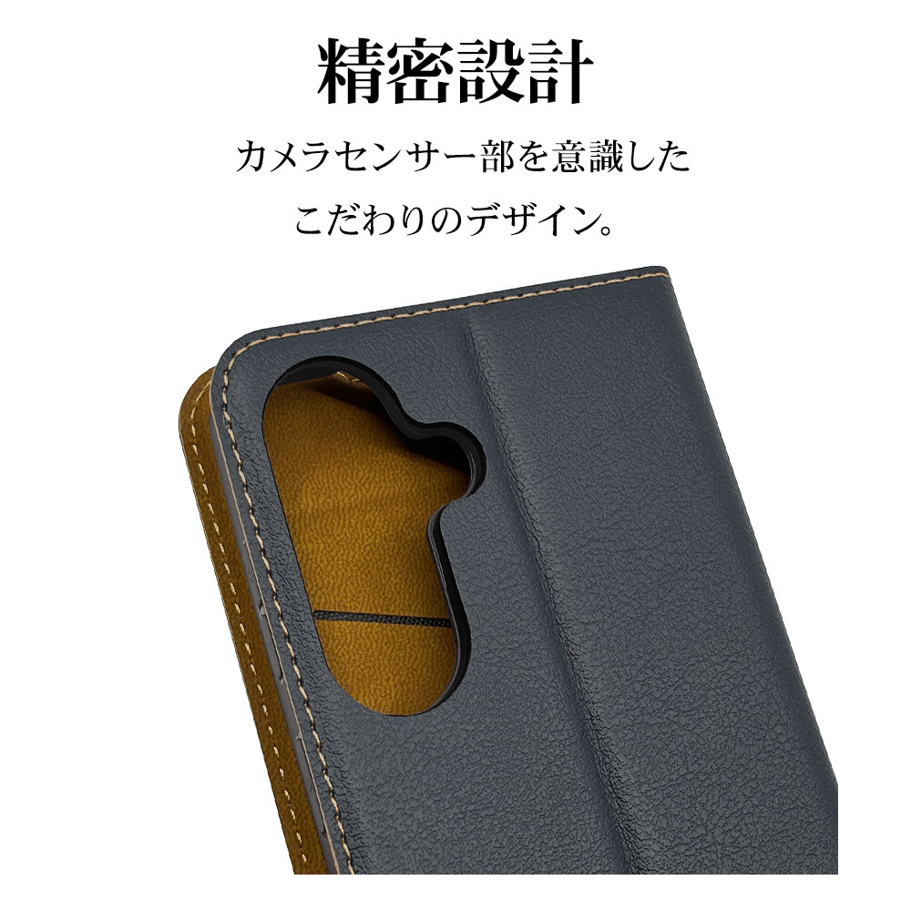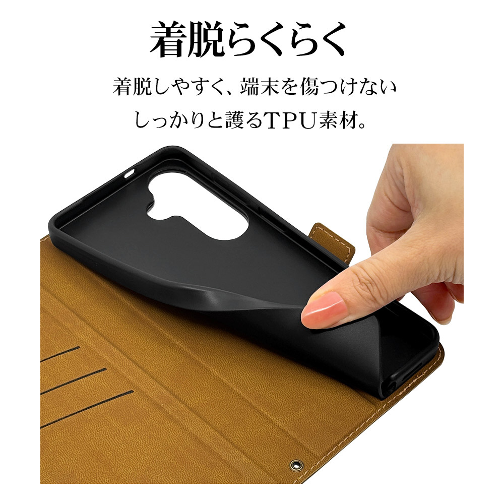 液晶画面側と背面側の両面を保護できる薄型で持ちやすい手帳型ケースです。