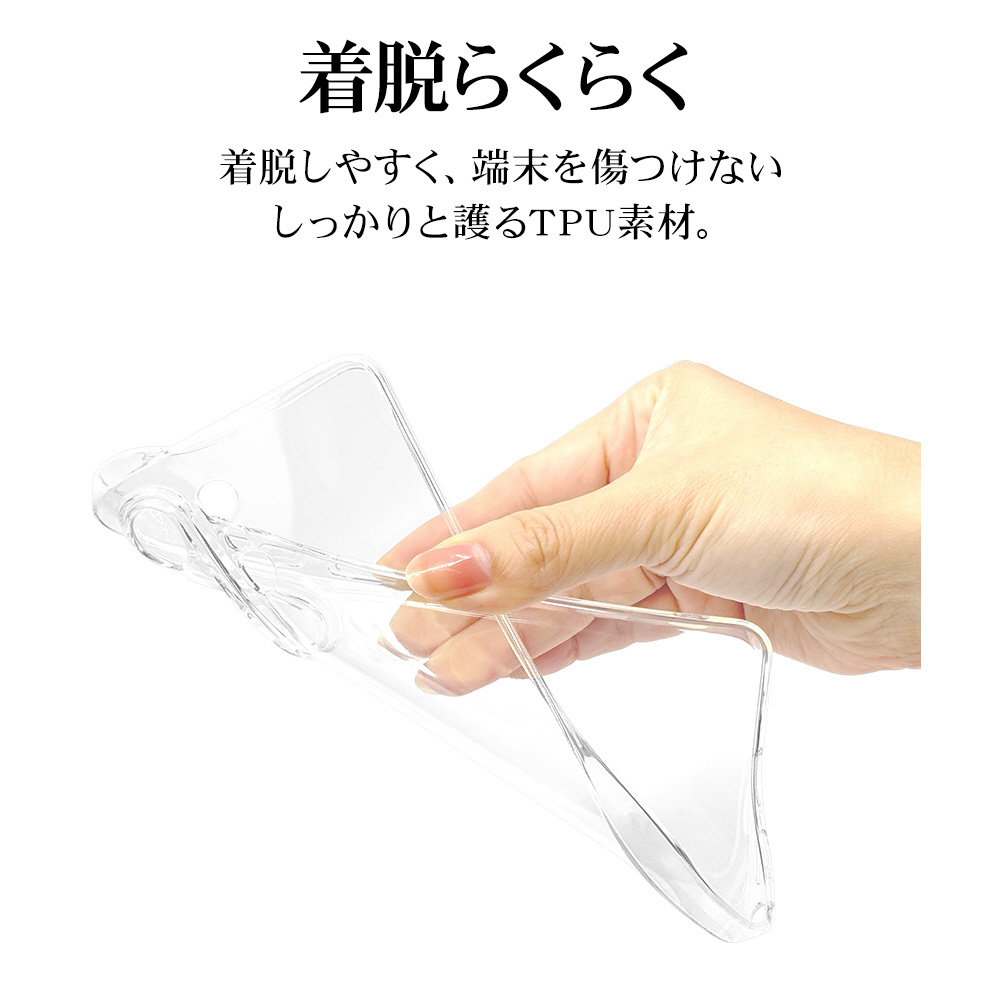 ●滑りにくく、しなやかなTPU素材で優しく端末を護ります。※衝撃吸収については、一般的なポリカーボネート製ケースと比較した自社検証結果で、無破損、無故障を保証するものではありません。