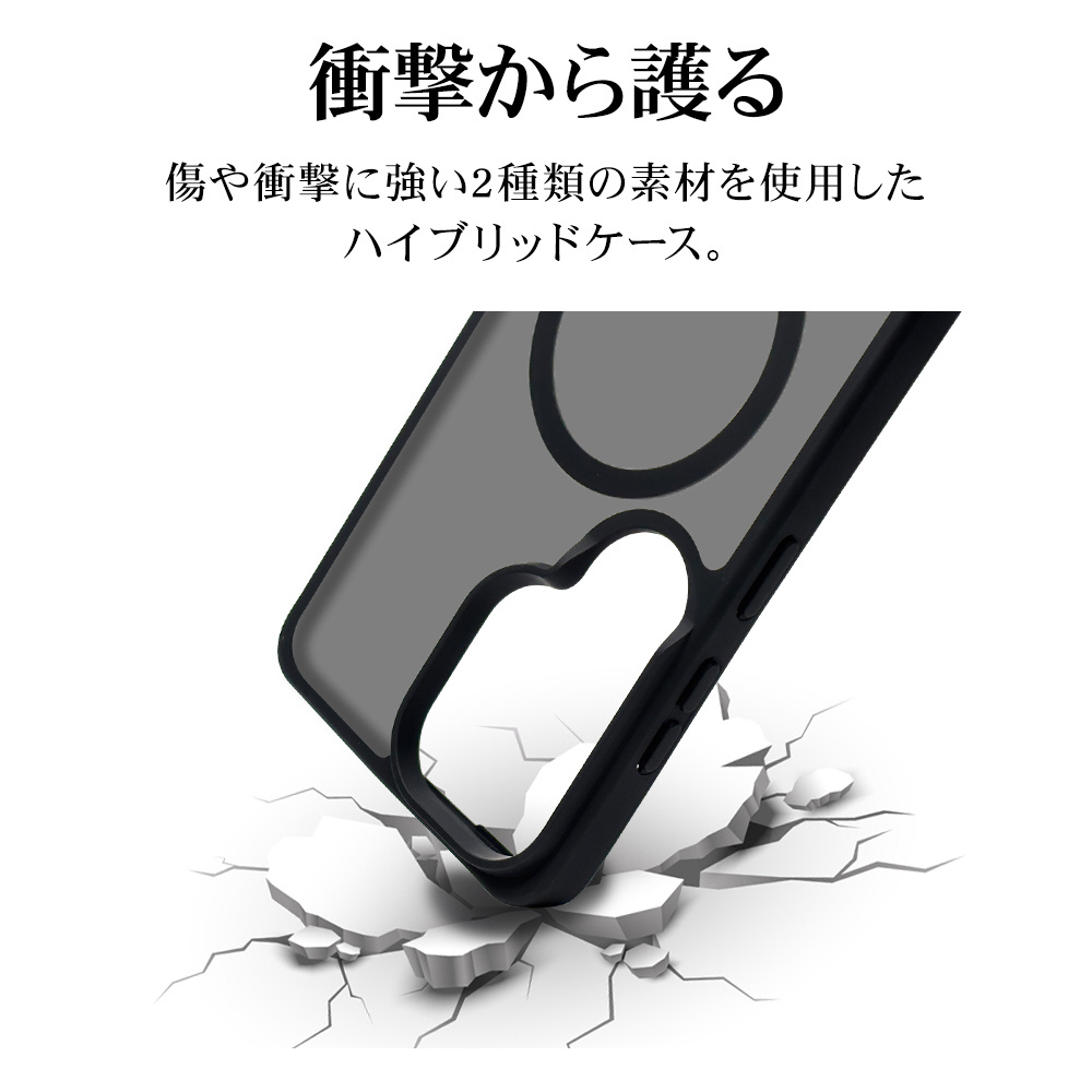 ●背面は指紋が付きにくい加工を施したポリカーボネート素材を使用しています。※衝撃吸収については、一般的なポリカーボネート製ケースと比較した自社検証結果で、無破損、無故障を保証するものではありません。