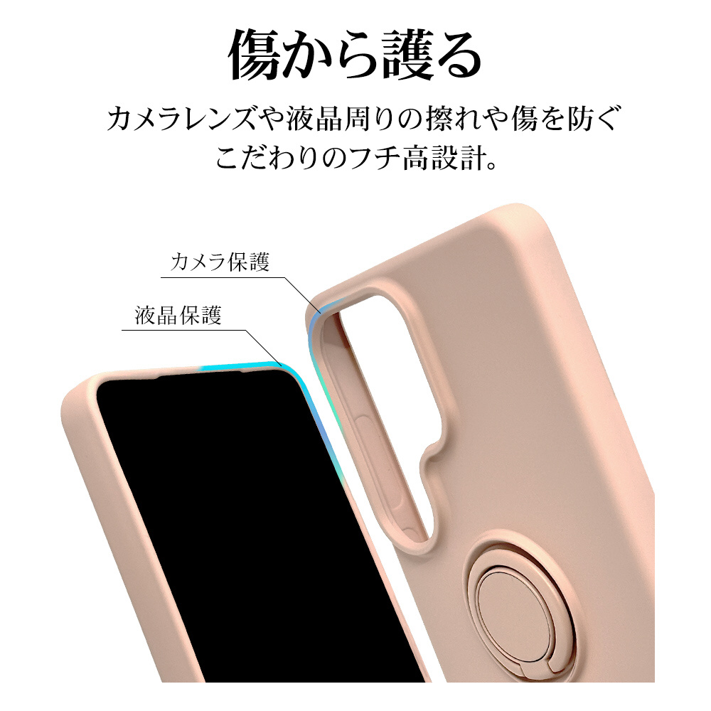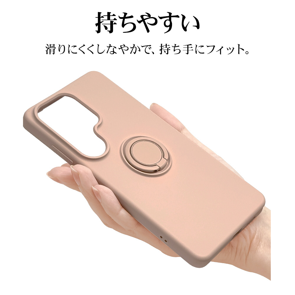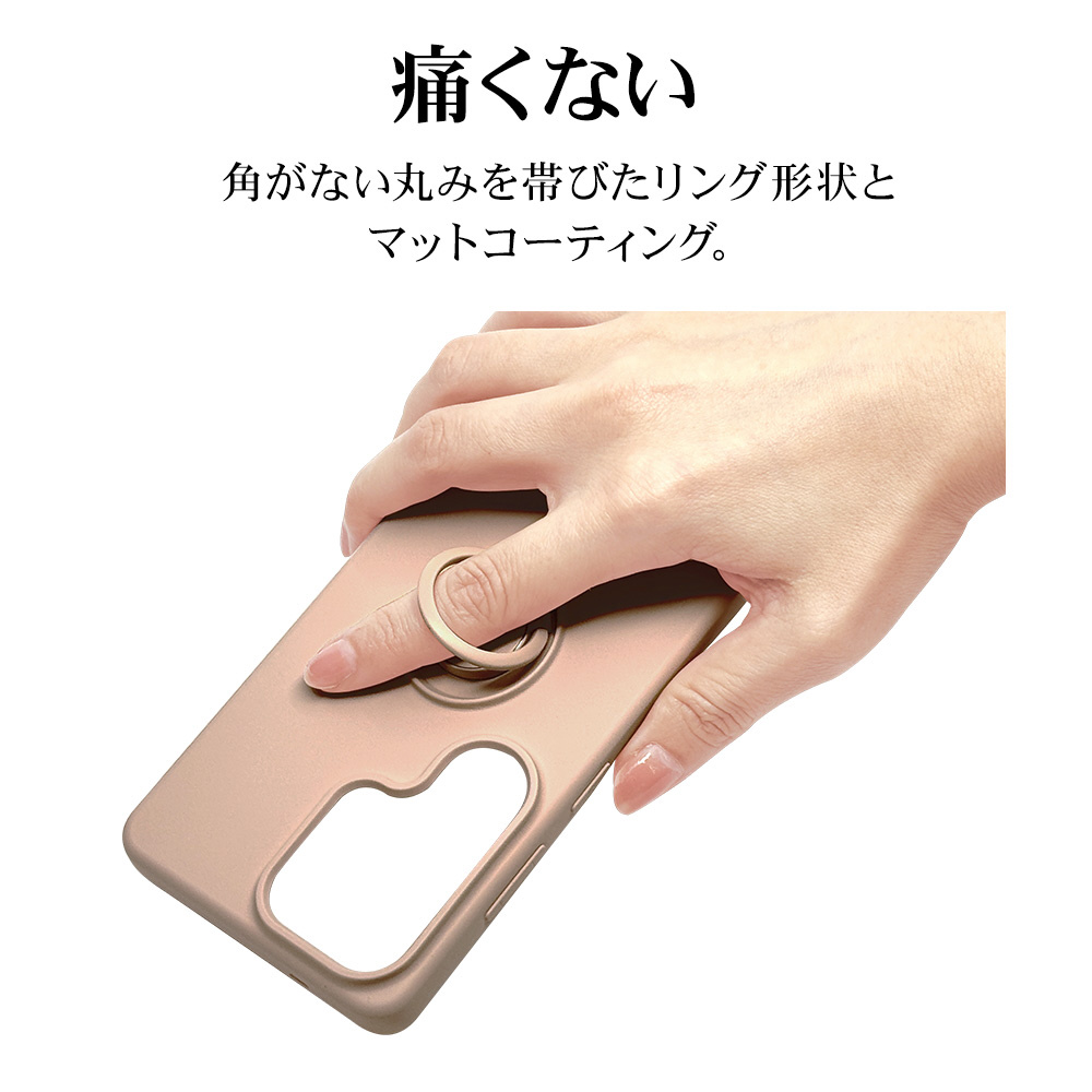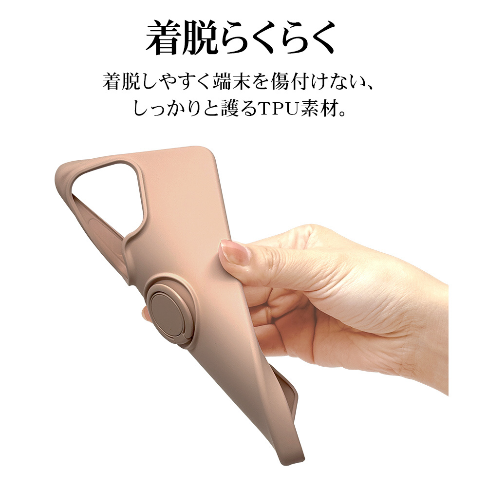 本製品はさらさら質感で指紋が付きにくいTPU素材の、落下防止リング付き背面ケースです。