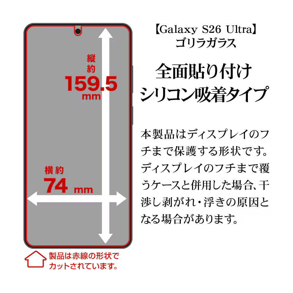 Galaxy S26 Ultra ゴリラガラスフィルム 薄型光沢