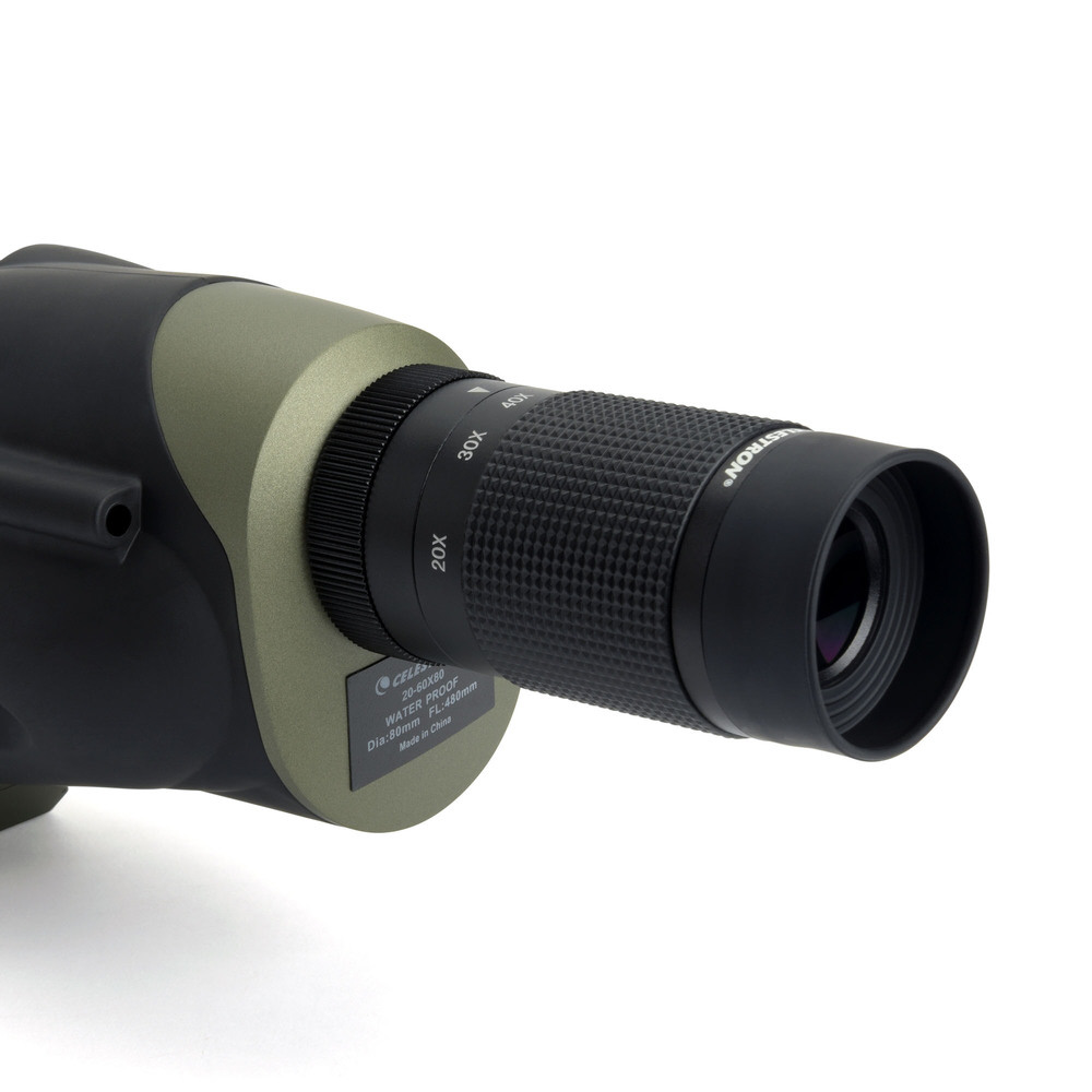 標準で20-60倍の高倍率ズーム接眼レンズが付属しており、幅広い倍率での観察が可能です。直視型設計なので、対象物を素早く捉えたい時に便利です。