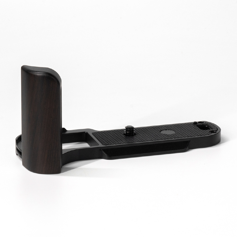 さらに、プレート部にはストラップホールを備え、縦位置・横位置のいずれの撮影スタイルにも柔軟に対応します。グリップ部には天然木を使用し、手に馴染みやすく、長時間の撮影でも快適なホールド感を提供。ホールド性を高めることで手ブレを抑え、安定した撮影をサポートします。使い込むほどに質感や光沢が深まり、天然素材ならではの経年変化をお楽しみいただけます。