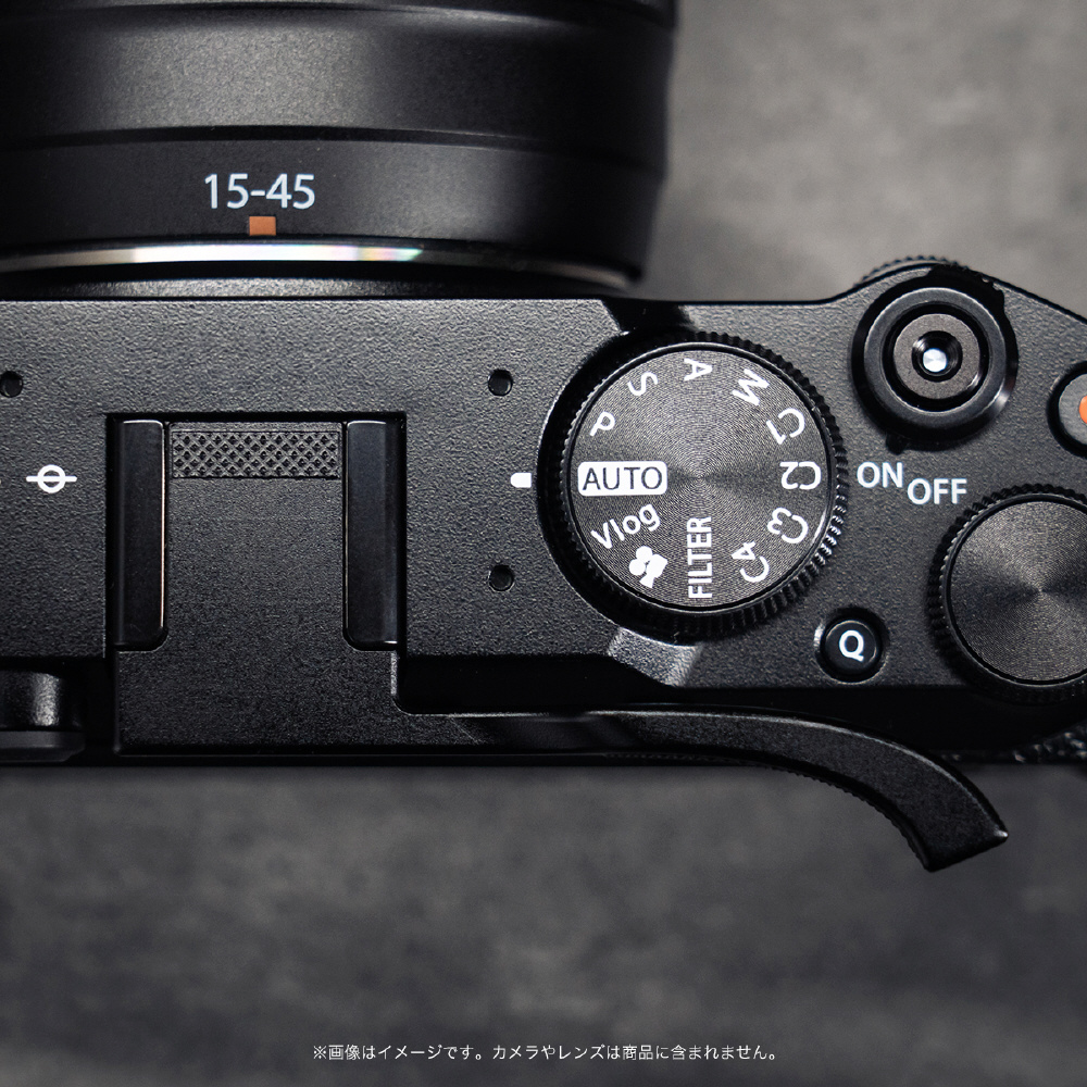 カメラ本体のデザインを損なうことなく調和する、シンプルかつ上品な外観を備えたサムレストです。