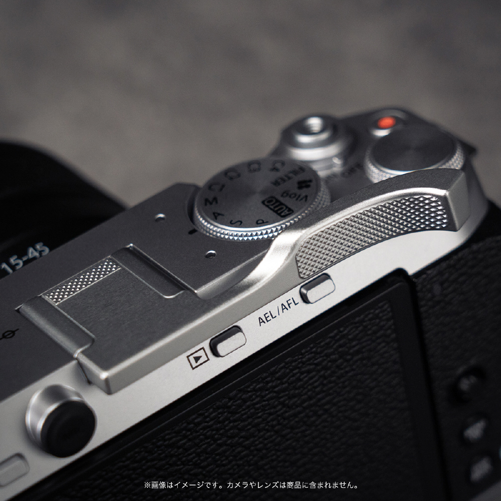 カメラ本体のデザインを損なうことなく調和する、シンプルかつ上品な外観を備えたサムレストです。