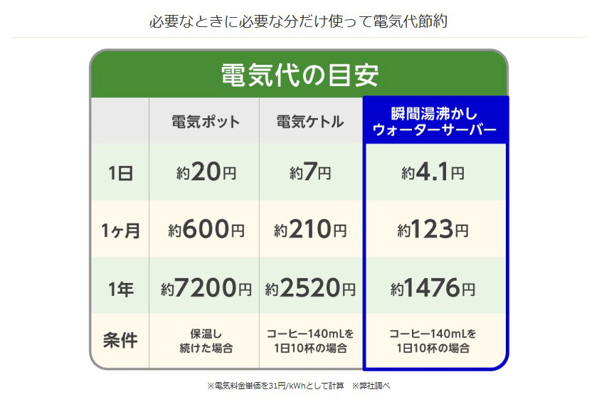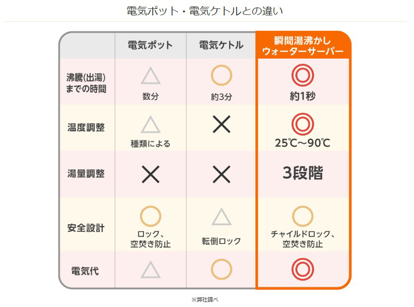 必要なときに必要な分だけお湯を作れる 瞬間湯沸かしウォーターサーバー