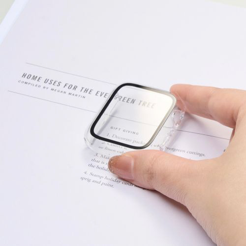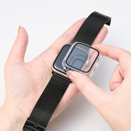 ポリカーボネート素材とガラスの2重構造で、Apple Watchの画面および側面部を保護します。
