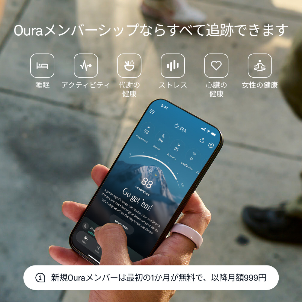高性能ジルコニアセラミックで丁寧に作られたOura Ring 4 Ceramicは、洗練された上品さと革新的な素材の魅力を兼ね備えています。