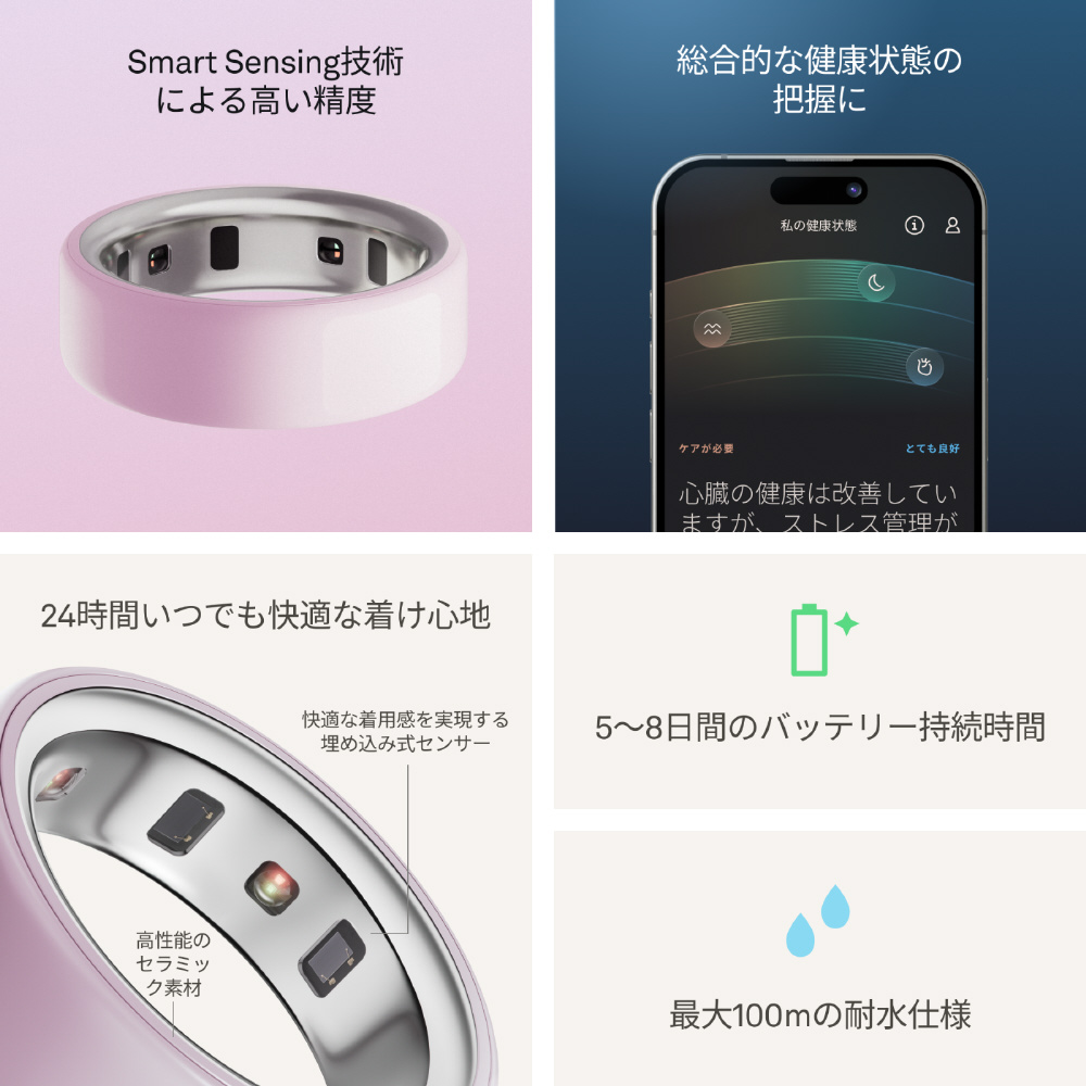 心拍や体温、活動量などを高精度センサーで24時間自動計測し、体調の変化を見逃しません。