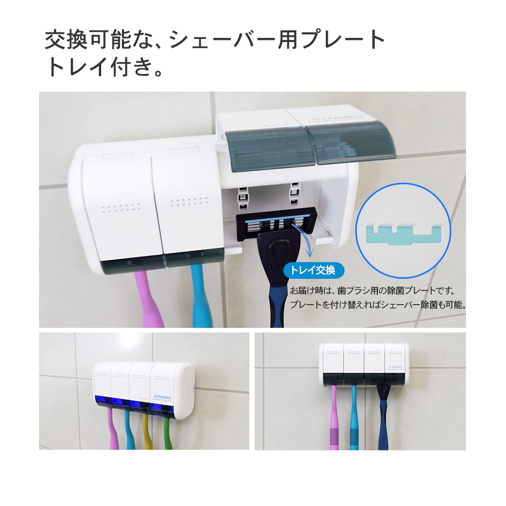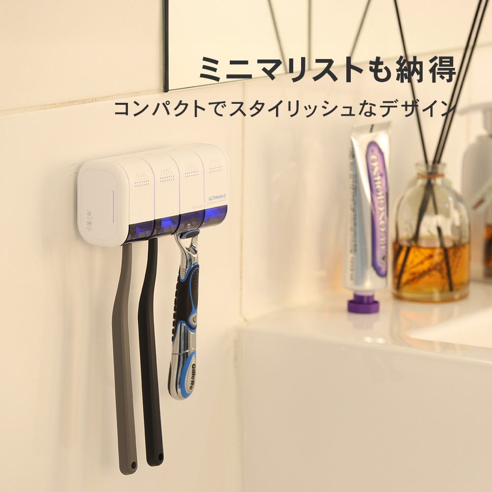 使用後の歯ブラシを3分で除菌 4本仕様の壁掛けタイプ