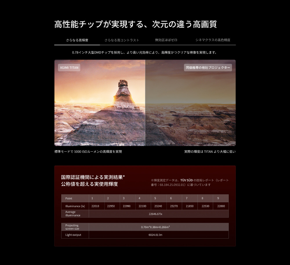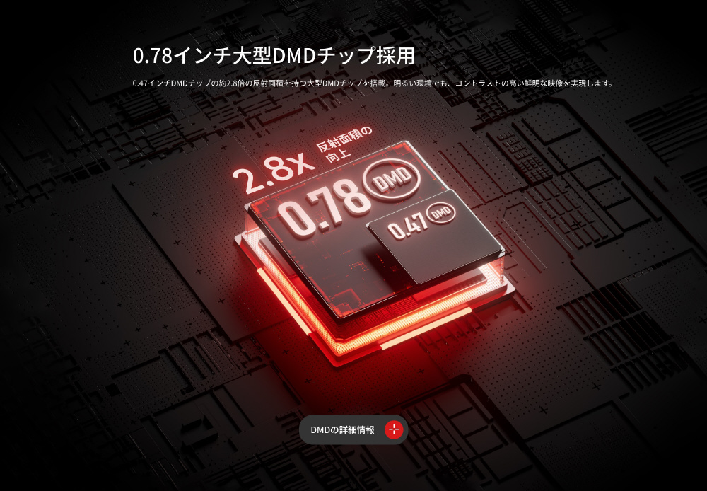 大型映像に適した0.78インチ HEPチップを採用。 細かな文字やグラフはもちろん、風景映像や映像コンテンツも、輪郭までシャープに描写します