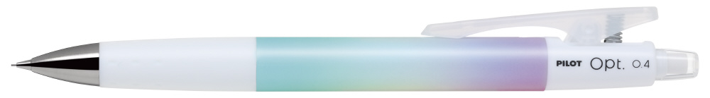 いつもよりも細く書けるOpt.細書きシリーズ 「描く」芯径から、「書く」芯径へ Opt.シリーズにPILOTで初の0.4mmフレフレ機構を搭載した0.4mmシャープペンシルが仲間入り。従来製品に比べ細い筆跡が特長のため、細書きを好む方に最適です。「オーロラ」は、前回の限定色で2次販売が好調であったデザインを踏襲しました。