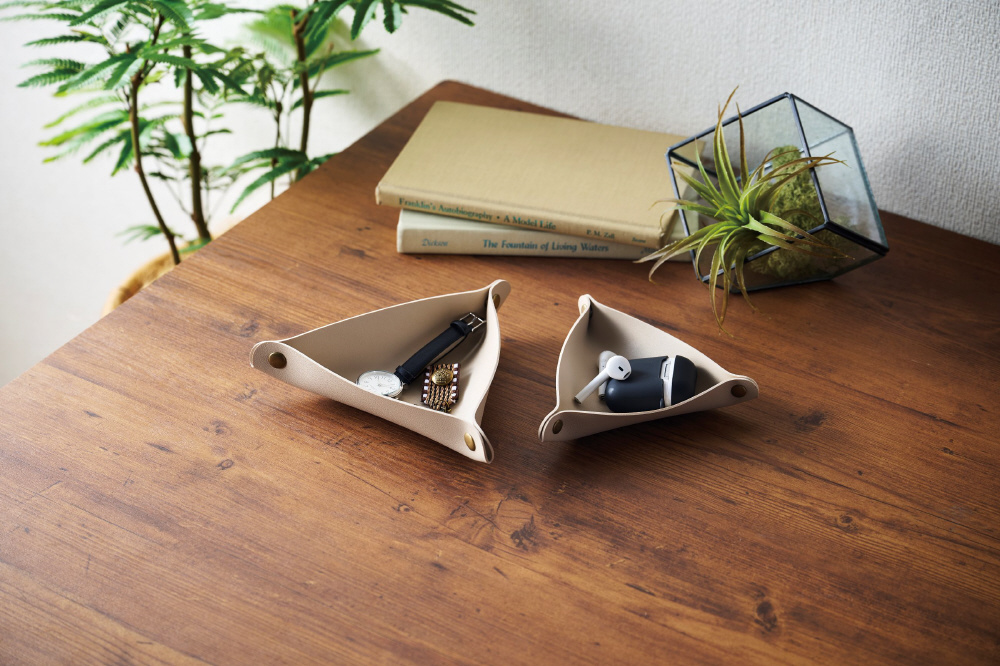 アクセサリーやスマートフォン、時計や鍵などの置き場にぴったりのトレイ大小2個セットです。