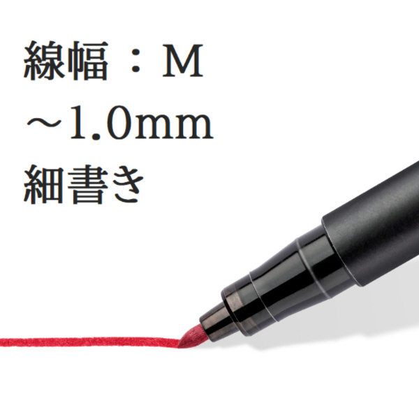 ステッドラー独自の特殊油性インクがペン先に薄い皮膜を作り、48時間もペン先の乾燥を防ぐ非常に便利な油性ペン。耐光性に優れており、屋外での使用にも最適で定着性も強いため長期間色あせせず、DVD-R、ガラス、陶器、フィルムなどなめらかな表面を持つ様々な素材に筆記可能な万能油性ペンです。・サイズ:141mm×12.8mm×9.8m  ・線幅:1.0mm  ・色:グリーン