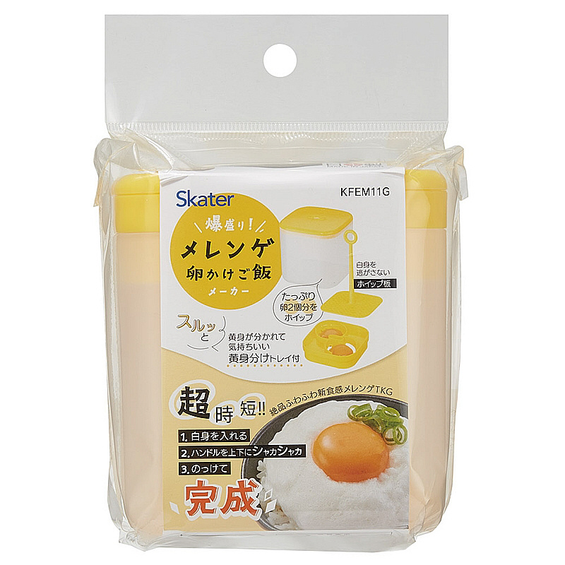 爆盛り。メレンゲ卵かけごはんメーカー。超時短。白身を入れて、ハンドルを上下にシャカシャカ。のっけて完成。黄身が分かれて気持ちいい黄身分けトレイ付き。白身を逃さないホイップ板。一度に卵2個分まで作れます。