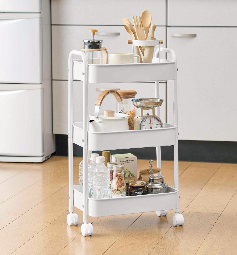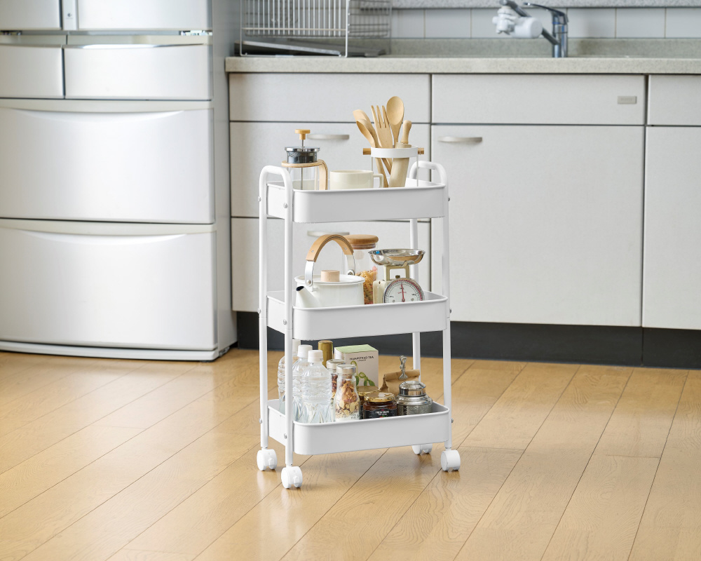 どんな空間にもフィットするシンプルなキャスター付収納ワゴン。