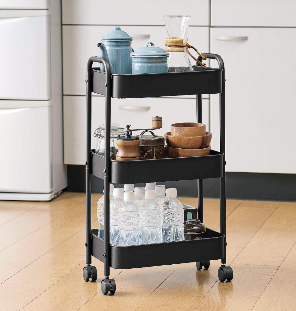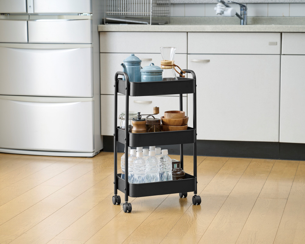 スチールワゴン3段(ブラック) N-7308