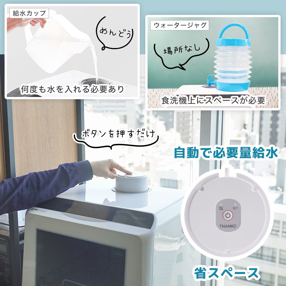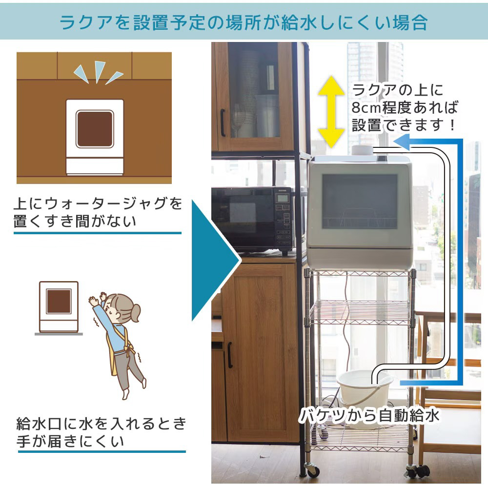 水道いらずのタンク式食器洗い乾燥機 「ラクア」の給水がラクになります!