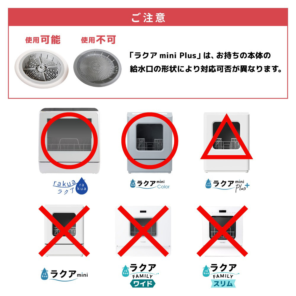 ※ラクアmini・ラクアファミリー ワイド・スリムは給水口の形状が異なるため使用できません。