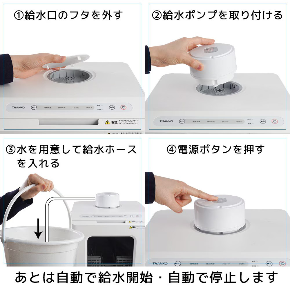【水道いらずのタンク式食器洗い乾燥機 「ラクア」シリーズの給水が楽になるラクア用電動給水ポンプ】