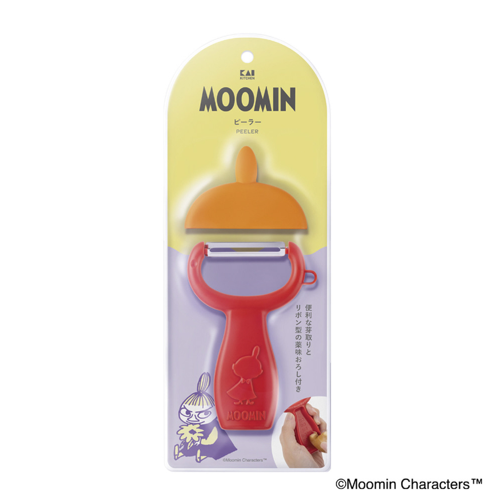 キャップをつけるとリトルミイのようなフォルムになるピーラー。ハンドルにはぷっくりとリトルミイのモチーフがあり、ハンドル裏側にはリトルミイのリボンに見立てた薬味おろし付き。