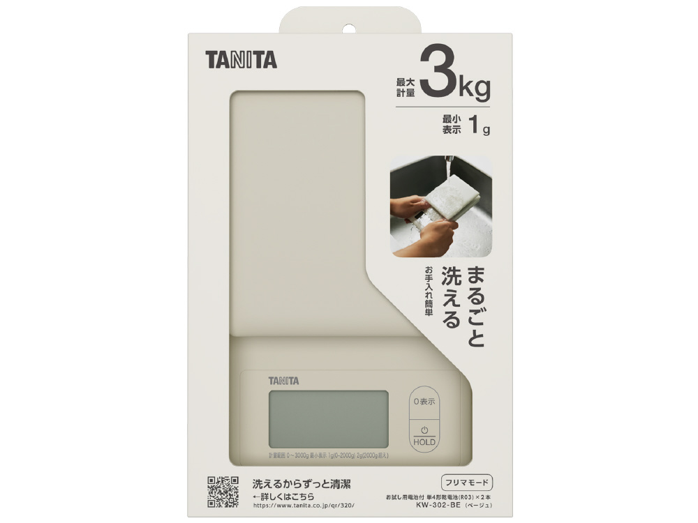 洗えるクッキングスケール(3kg) KW-302 ベージュ 1g単位 KW-302BE