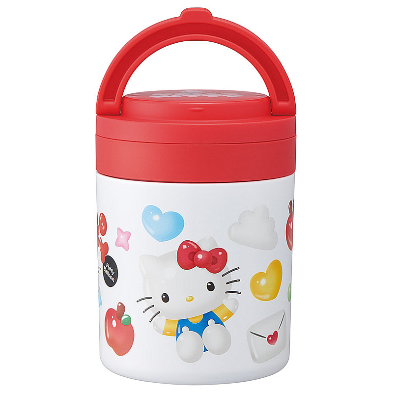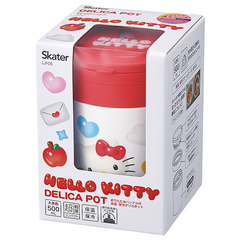 キティ/ぷっくりバルーン 折りたたみハンドル付デリカポット500ml LJFO5