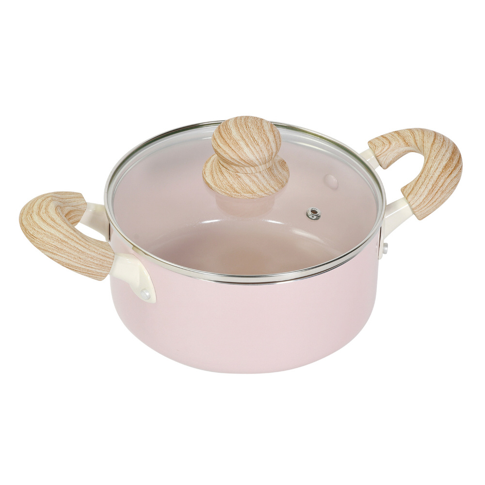 両手鍋 18cm キャセロール IH ガス火対応 ガラス蓋付 セラミック 軽量 セラミック毎日ポット ピンク NQ-437