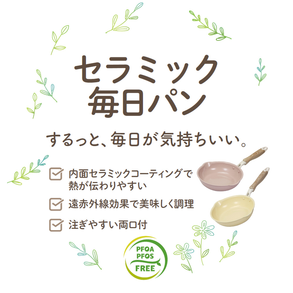 フライパン 24cm IH ガス火対応 セラミック 両口 軽量 セラミック毎日パン カスタード NQ-440