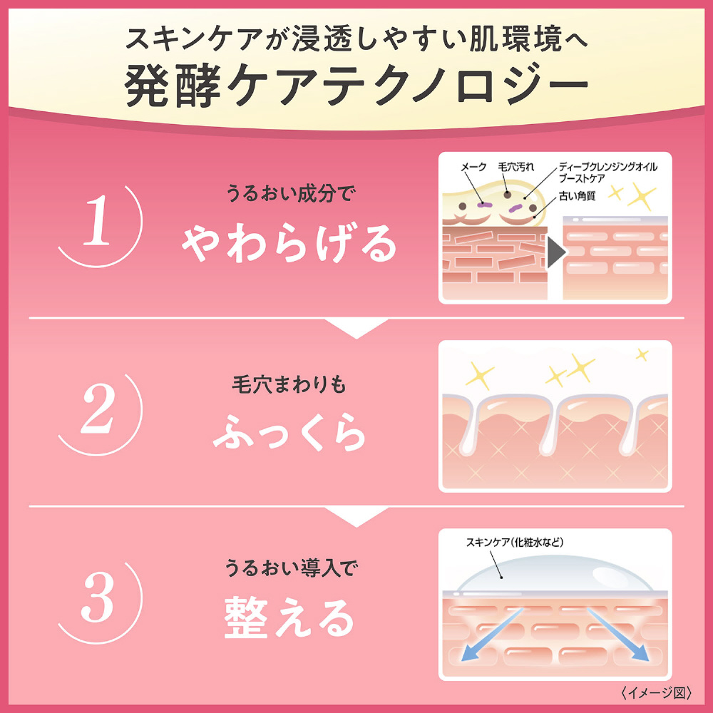 発酵ケアテクノロジーを搭載し、1本でメーク落とし・洗顔・ブースター機能*の3役を果たすクレンジングオイル。