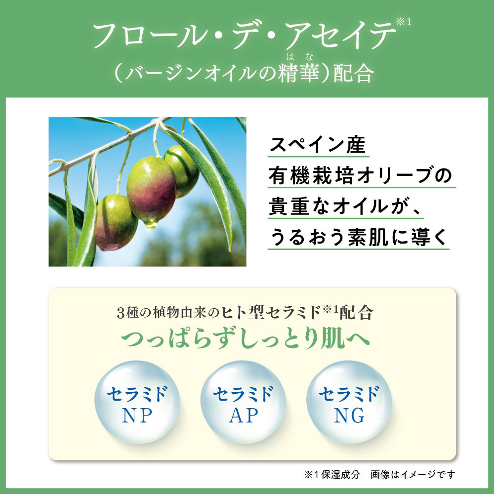 W洗顔不要で、3種のヒト型セラミド* を配合しうるおいを守りながらしっとりやわらかな肌へ。
