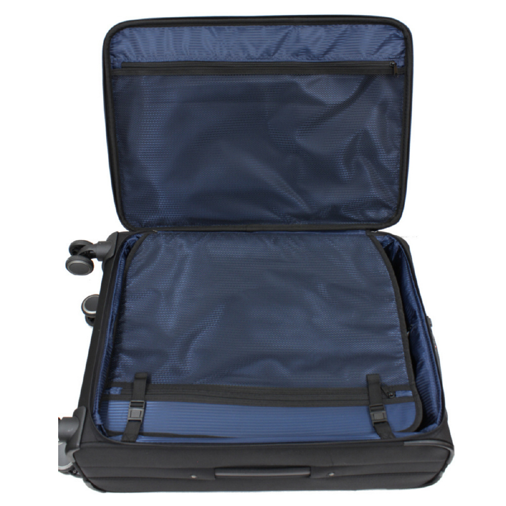 内装は視認性の高いネイビーカラー。シンプルなブラックデザインで、家族旅行からビジネスまで幅広く活躍します。