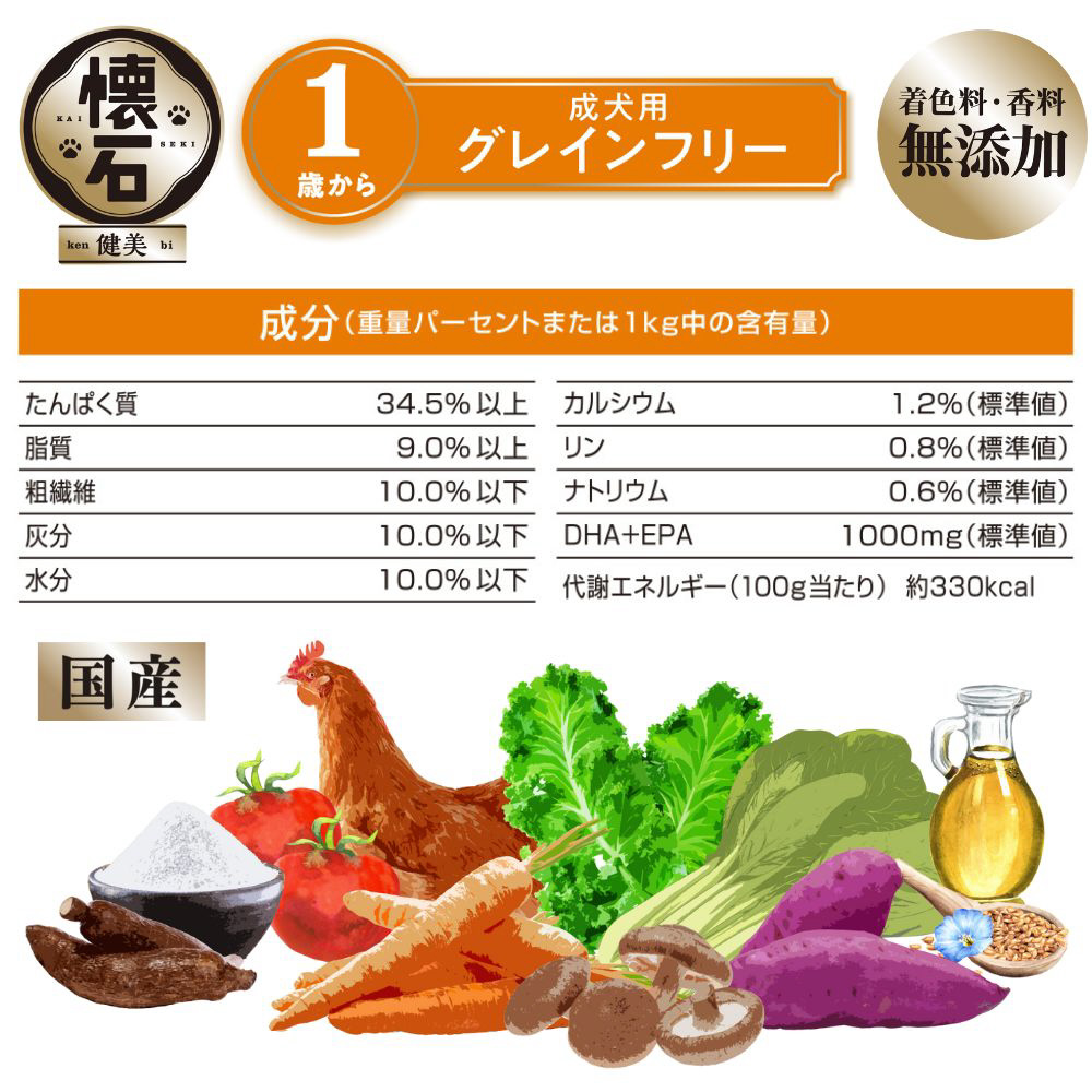 ペットライン 懐石 健美 グレインフリー 1歳から1kg(250g×4袋)