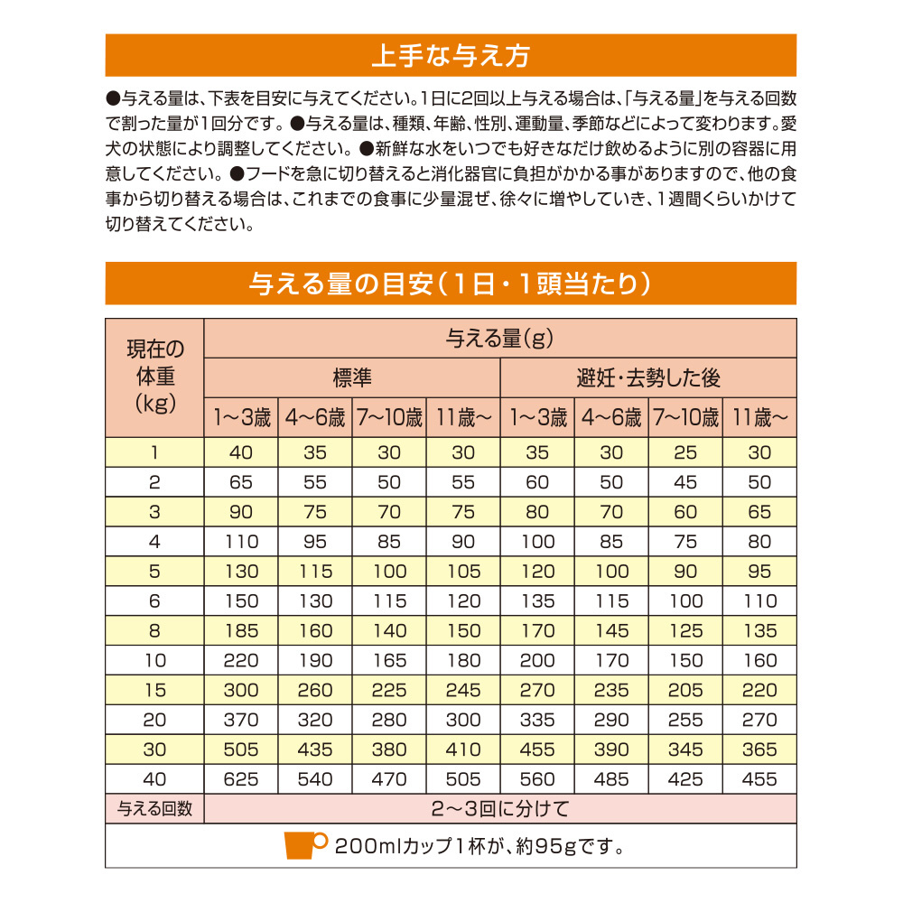 乳酸菌とフラクトオリゴ糖が腸内フローラを整え、健康を維持することにより免疫力を保つ。穀物アレルギーの愛犬に配慮して、原料として穀類不使用