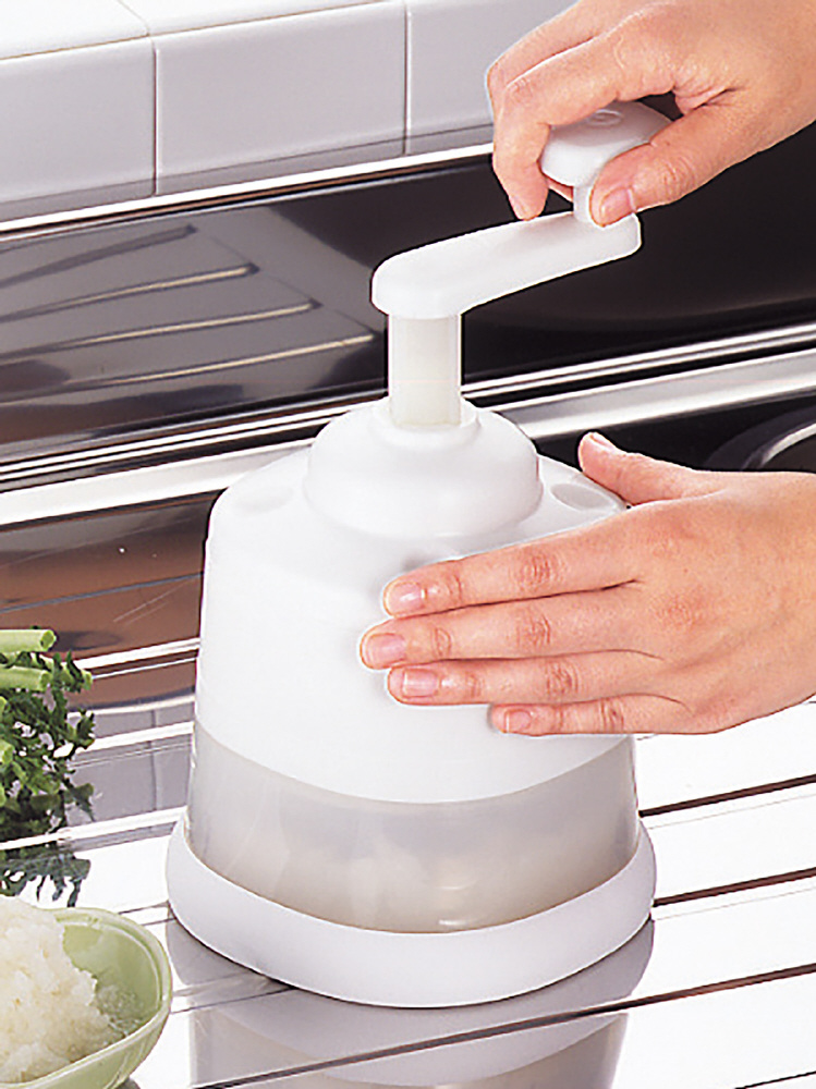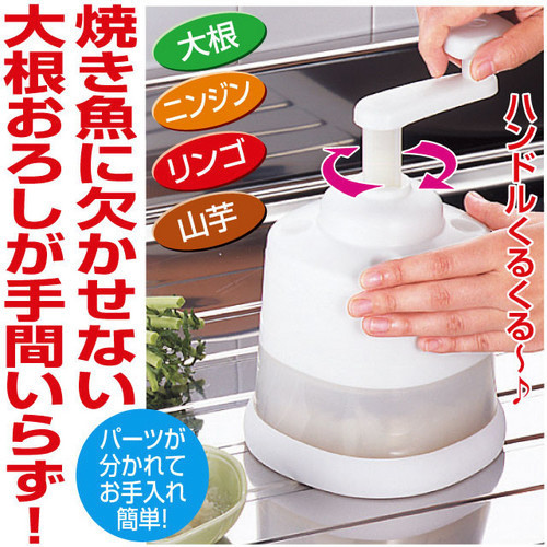 ●お年寄りや、指先の力が弱い方でも簡単に大根おろしが作れます!お好みの材料を入れてクルクル回せば、おいしいおろしが簡単にできます。