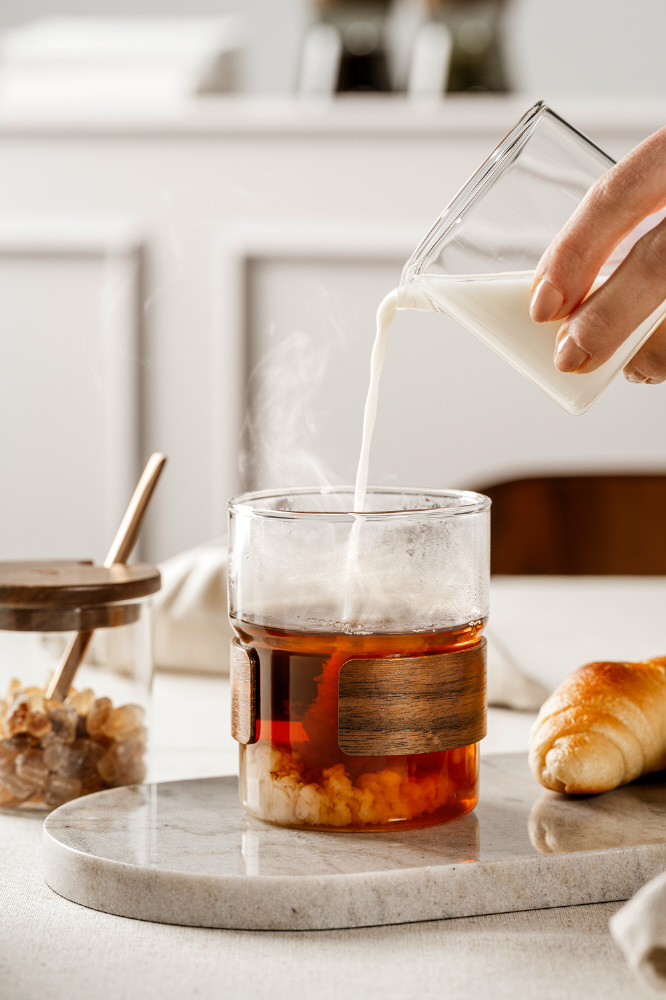 ホットドリンクからアイスまで幅広く活躍する、軽量ガラスコーヒーカップ(2個セット)。耐熱性に優れたホウケイ酸ガラス製で、紅茶、コーヒー、ホットチョコレート、ホットワインはもちろん、アイスティーやデザートにもぴったり。セットのスリーブのおかげで熱い飲み物も安全に持つことができます。