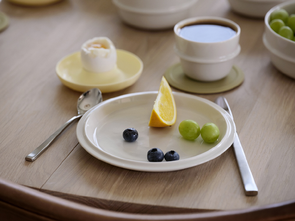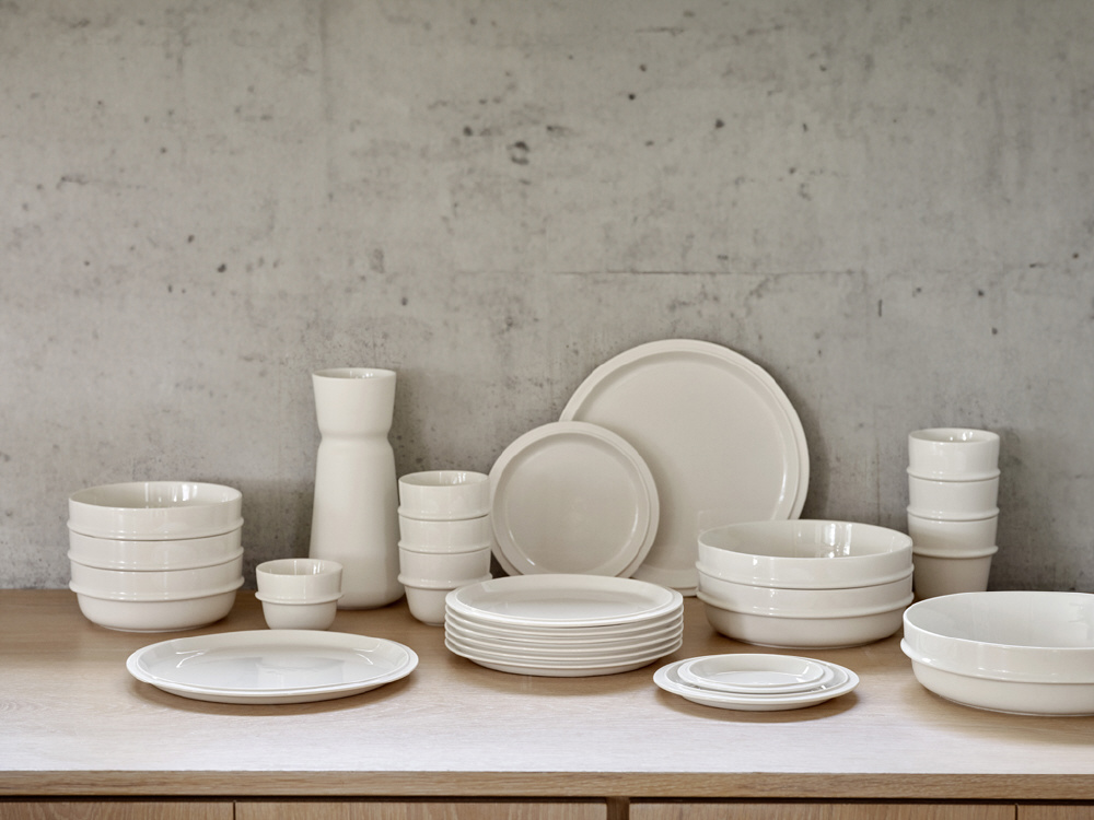 飾り気を削ぎ落としたデザインに、使いやすさと収納性を融合。テーブルの準備や片付けが簡単になるだけでなく、食器棚への収納は省スペース。毎日の食卓から特別な集まりまで、幅広く活躍する万能シリーズです。