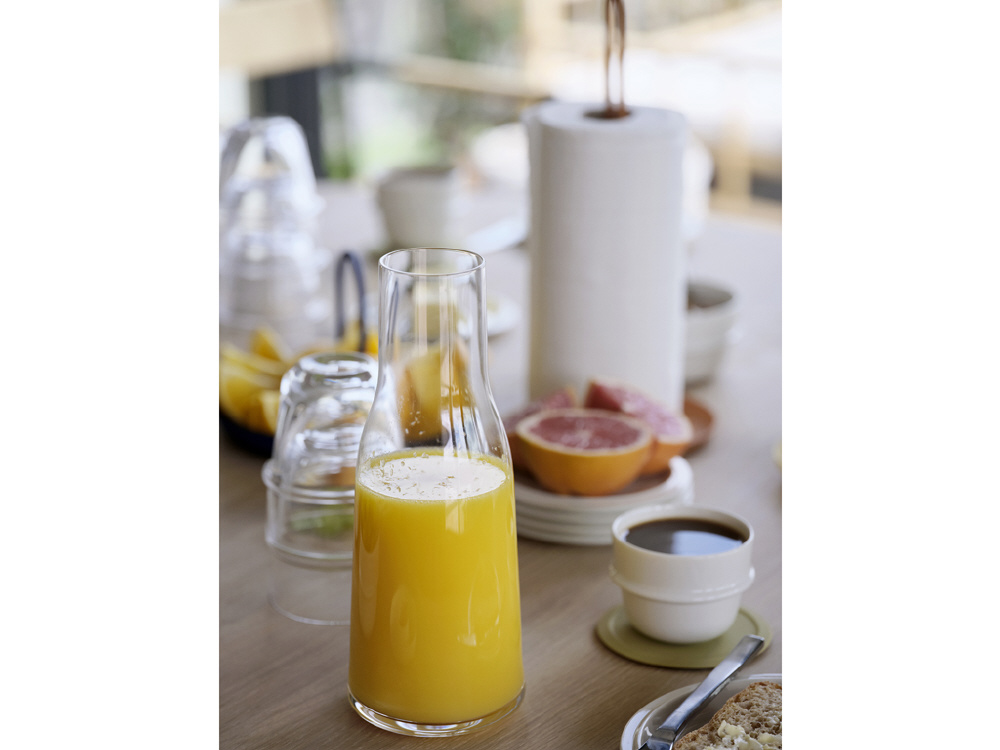 Eauシリーズにはさまざまなサイズのプレートやボウル、カップ、カラフェ(ピッチャー)が揃い、すべて上品なオフホワイトの磁器で仕上げられています。