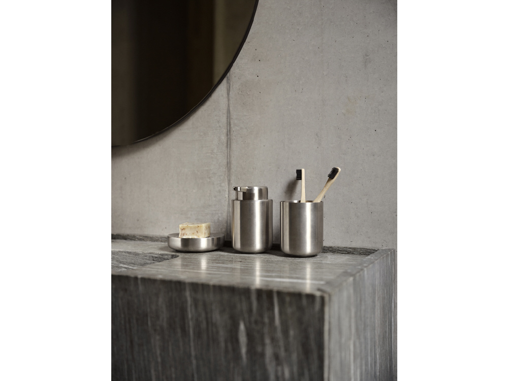 上品なマット仕上げのスチールが放つ、静かな存在感。丸みを帯びた有機的フォルムが、機能性とデザイン性を見事に融合させた「Ume」シリーズの歯ブラシスタンドです。