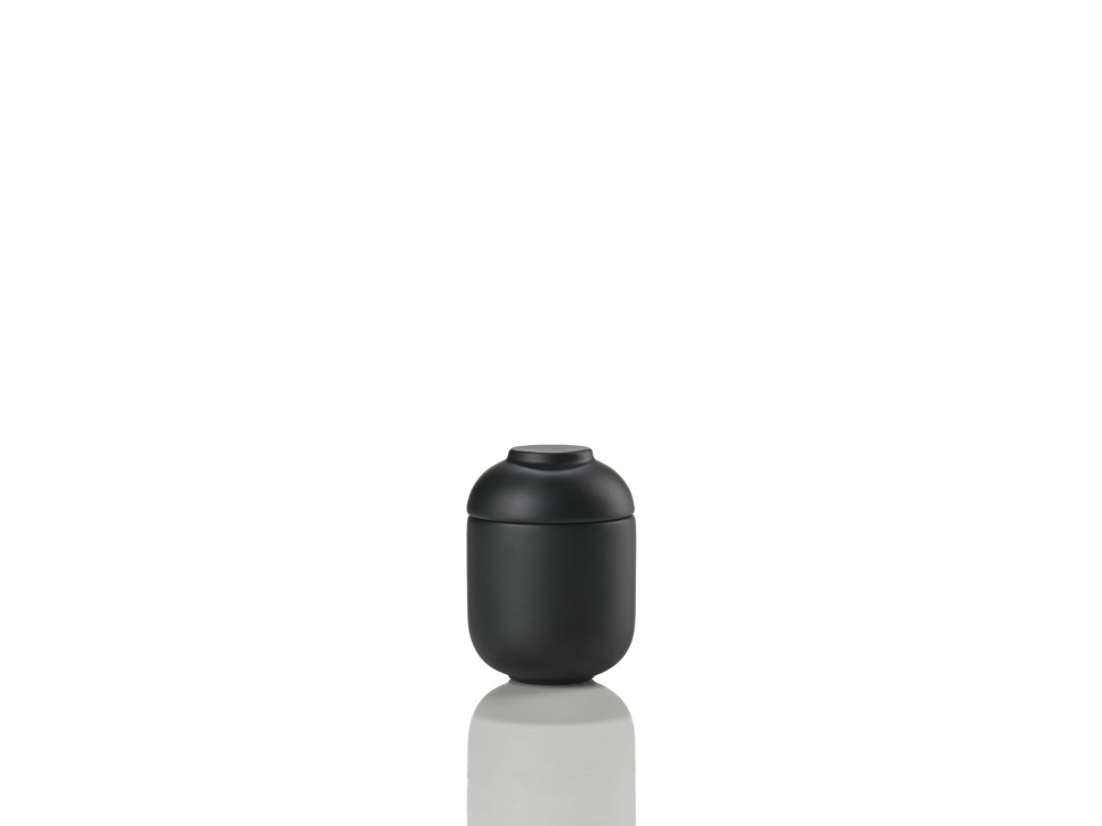 日本の美意識を感じさせるミニマルなデザインが魅力の「SENSU」シリーズ。6.5×9cmサイズの蓋付きジャーは、綿棒やつまようじなど小物の収納にぴったり。蓋を裏返せばティーライトキャンドルホルダーとしても活躍します。ストーンウェアならではの上質な質感と落ち着いたブラックカラーが、洗練されたバスルーム空間を演出します。