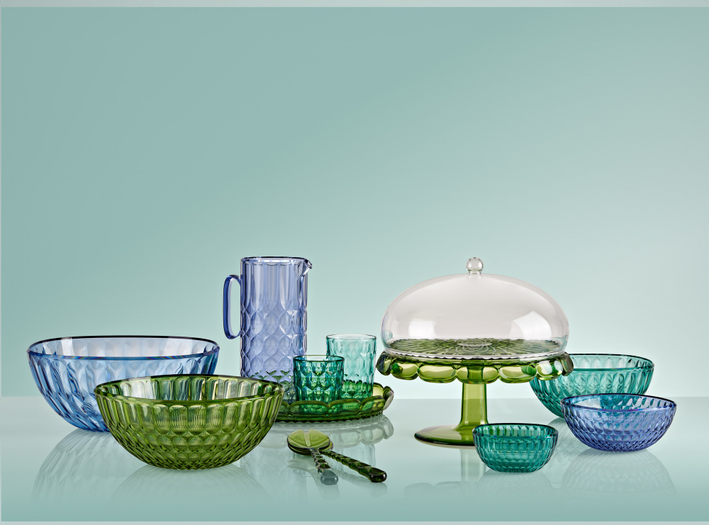 ガラスのような美しさを持つアクリル製テーブルウェア。ダイニングやレストランなどの屋内はもちろん、軽くて持ち運びやすく、割れにくいのでガーデンやアウトドアでもお使いいただけます。