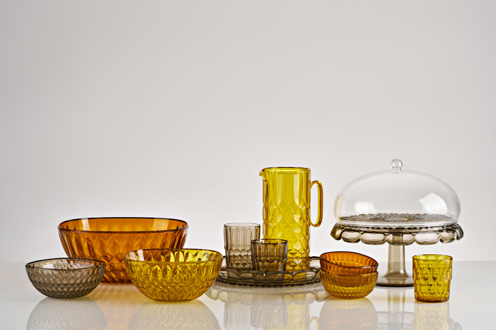 ガラスのような美しさを持つアクリル製テーブルウェア。ダイニングやレストランなどの屋内はもちろん、割れにくいのでガーデンやアウトドアでもお使いいただけます。