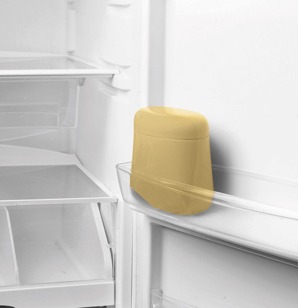 コーヒーの香りをしっかり閉じ込め、保存に適したコーヒージャー。冷蔵庫のドアシェルフに収まるコンパクトな形状で設計されています。コーヒーとって有害な光から保護するため不透明な仕上げになっています。コーヒー豆容量約250g。