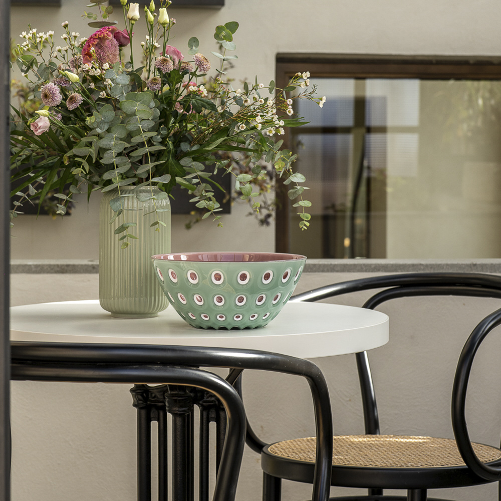 イタリアムラーノ島、ベネチアグラスデザイナーのピオとティト・トーソ兄弟手掛けた「レ・ムリーネ」。グッチーニ独自の3 色一体成型技術を生かし、他に類のないデザインを創り出しました。今までのアクリル樹脂製品では考えられない独特で洗練されたデザインは、ムラーノ島ならではの芸術的なガラス作りの美しさを人々へしっかりと印象付けます。