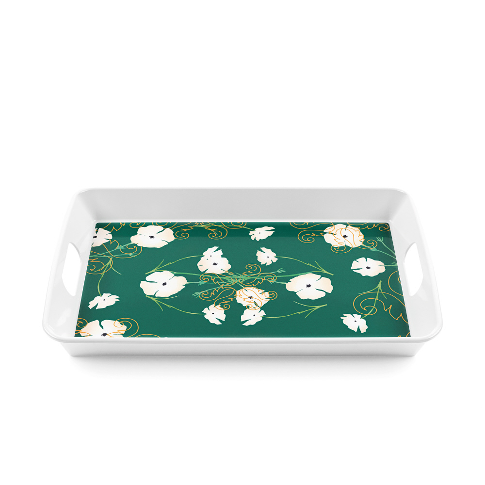 メラミン樹脂製で軽く持ち運びやすいトレー。持ち手も付いて安定します。ダイニングやレストランなどの屋内はもちろん、割れにくいのでガーデンやアウトドアでもお使いいただけます。