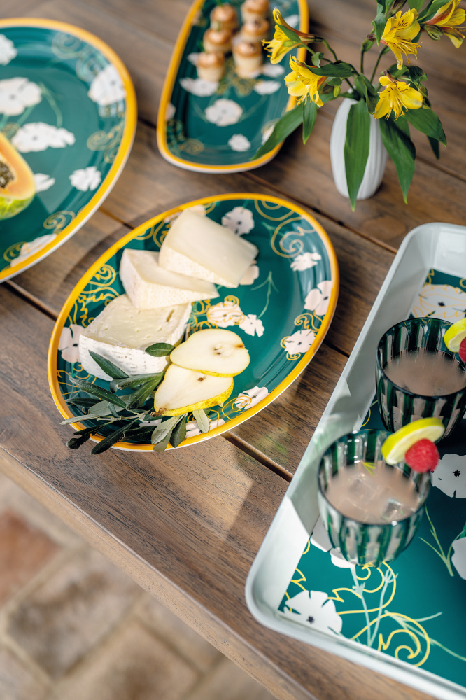 オリエンタルなムードでテーブルを彩る「FUSION (フュージョン)」コレクション。エレガントな花柄と深い緑色は、遠く離れた異国の場所や文化を思い起こさせます。