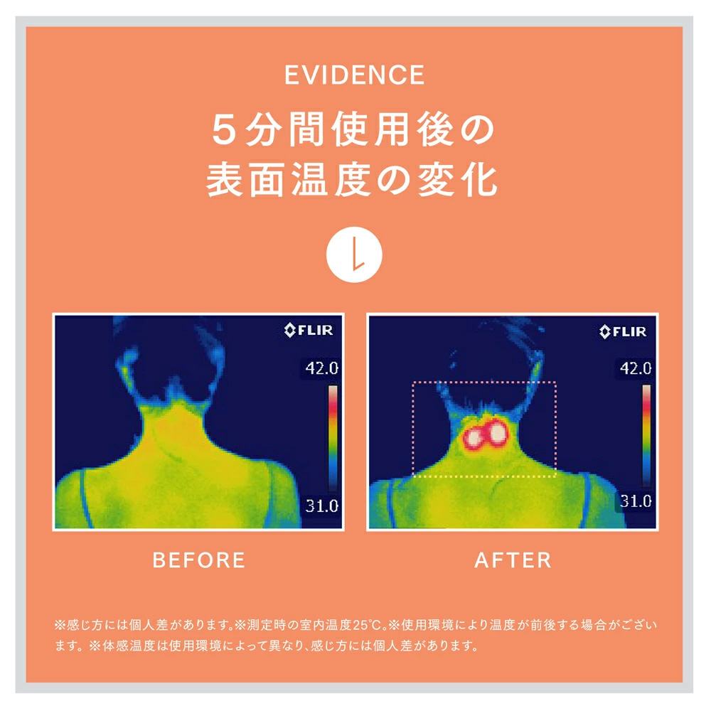3段階の温熱モードを搭載し、自重を活かすことで温熱がより深く浸透します。これにより、首の緊張がほぐれやすくなり、EMSと牽引機能による首ケアの質がさらに向上します。